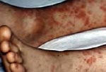 Повторное проникновение лептоспир в кровь определяет начальный период заболевания с последующей генерализацией инфекции - быстрый подъем температуры тела до 39-400С, озноб, выраженные симптомы интоксикации - головная боль, тошнота, рвота, поражение конъюнктивы, гиперемия склер и лица, появляются характерные боли в икроножных мышцах и т.д. В это время в крови нарастает концентрация продуктов жизнедеятельности и распада (токсинов) лептоспир, которые снова проникают в различные органы, концентрируясь в почках, печени, надпочечниках, в оболочках мозга. В последующем на 3-5 сутки заболевания поражаются кровеносные капилляры, чем объясняется кровоизлияние в органы и ткани, в области конечностей и туловища на коже и слизистых появляется ярко-розовая сыпь, которая сохраняется до 10 суток. Позже проявляется желтуха, острая почечная недостаточность, прекращается выход мочи, что и служит частой причиной смерти. Возможны осложнения со стороны глаз, нервной системы, почек.